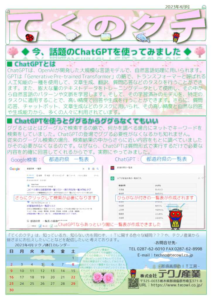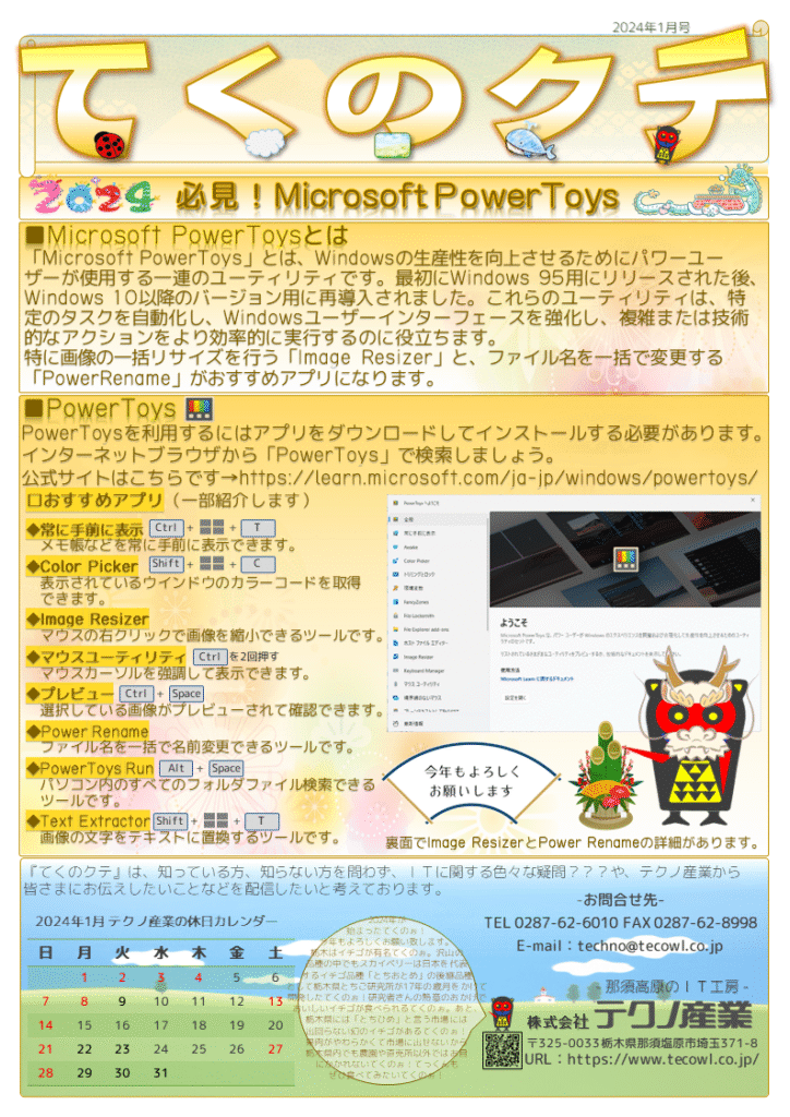 【てくのクテ】では、ジャンルを問わず、テクノ産業がお届けしたい情報を皆さまへ発信してまいります。ご不明点やご質問がございましたら、お気軽にお問い合わせください。